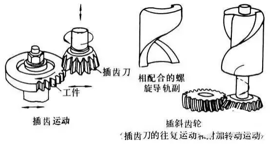 插齒是除滾齒以外常用的一種利用展成法的切齒工藝。插齒時,插齒刀與工件相當(dāng)于一對圓柱齒輪的嚙合。插齒刀的往復(fù)運(yùn)動是插齒的主運(yùn)動,而插齒刀與工件按一定比例關(guān)系所作的圓周運(yùn)動是插齒的進(jìn)給運(yùn)動。
