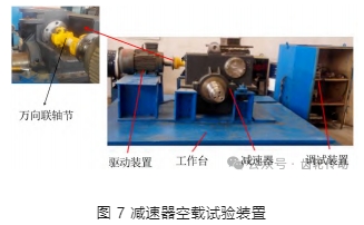 對修復(fù)組裝合格的減速器進(jìn)行空載試驗(yàn),圖 7 為減速器空載試驗(yàn)裝置。