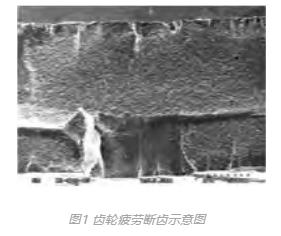 1) 疲勞斷齒:疲勞斷齒是齒輪在長時間重復加載下的疲勞損傷所導致的失效(見圖1)。