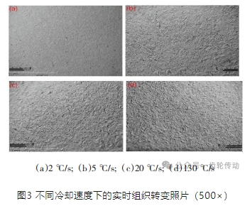 在高溫顯微鏡上對實驗鋼種進行相同的奧氏體化條件加熱,然后以相同的冷卻速度冷至室溫,可實時觀察試樣的組織轉變過程。