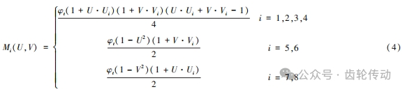 式(4)中,Mi(U,V)表示的是齒輪內部疲勞裂紋邊界插值函數。其中,U 與 V 表示的是橫向與縱向對應的應力數值;Ui 與 Vi 表示的是第 i 個插值點對應的橫向與縱向應力數值。