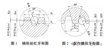 式中,x1:梯形絲杠牙中徑處齒厚值;x2:與之配作的螺母牙中徑處齒厚值。