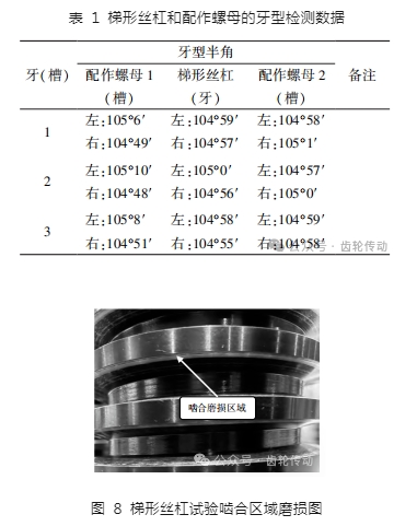 3)梯形絲杠副牙型半角是影響絲杠副嚙合傳動的關鍵因素,其嚙合區域與牙型半角偏差呈反比。可根據牙型半角對梯形絲杠和配作螺母的磨損規律對螺母進行調整,實現梯形絲杠副的最佳牙面嚙合,達到提高傳動的平穩性、自鎖性,降低絲杠副磨損的目的。