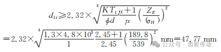 計算 ①試計算小齒輪分度圓直徑 d1t,代入[σH]中的較小值
