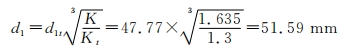 ⑥按實際的載荷系數校正所得的分度圓直徑,由式 (10-10a)得