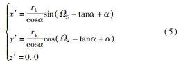式中:rb 為基圓半徑,α 為壓力角,ΩS 為 1/2 基圓齒厚對應的圓心角,ΩS = π/ 2z + θn ,θn 為展角,θn = tan(αn)-αn,αn 為分度圓壓力角,z 為齒數。