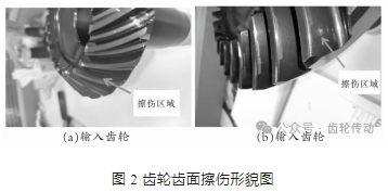 該中間減速器大功率試驗后,除輸入齒輪、輸出齒輪齒面擦傷外,其余零件外觀質量均無異常,測量齒輪齒型、齒向、齒頂圓角等相關尺寸均符合設計圖樣要求。根據齒輪工作原理、擦傷出現部位和尺寸測量結合,初步分析認為擦傷問題是齒輪工作過程輸入齒輪齒底與輸出齒輪齒頂倒圓干涉所致,為準確定位原因,補充開展檢查和分析工作。