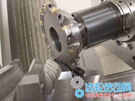 在使用可轉位圓刀片打開齒槽后,再采用新型銑削刀具概念加工齒側面。刀具類型可分類為中間工序加工用刀空心銑刀和鐘形銑削刀具。銑刀軸的安裝角可調,并且銑削刀具輪廓呈細長狀,這樣就能加工出各種牙側角和模數。凸凹兩種齒側面可以采用同一把兩側安裝有刀片的刀具加工而成。如果刀具僅一側配有刀片,以便增加有效刀片數(并由此提高進給率),則可節省相當多的時間。所需的更多換刀只會增加少量的時間。