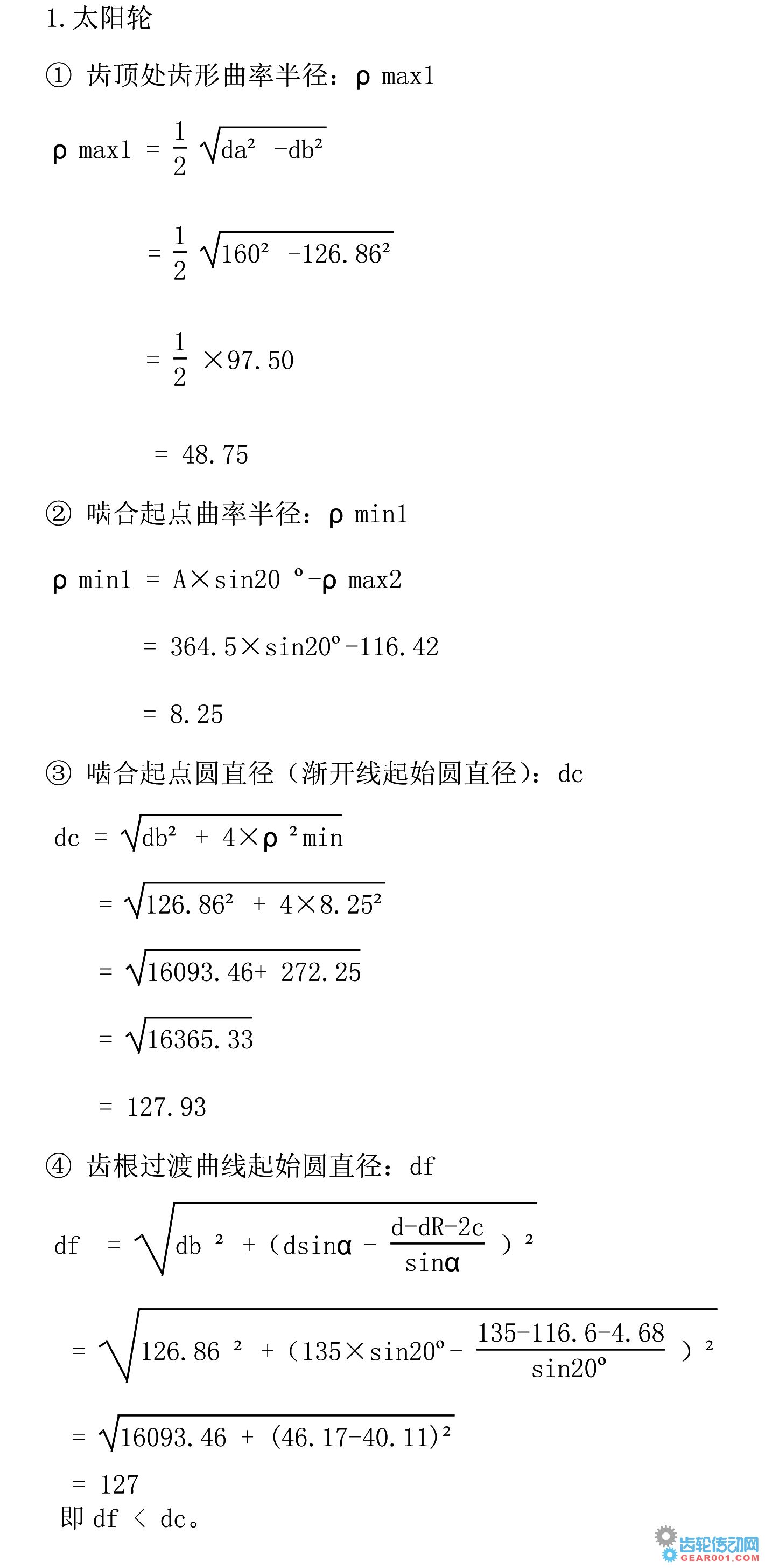 二、太陽輪、大行星輪的齒根干涉計(jì)算