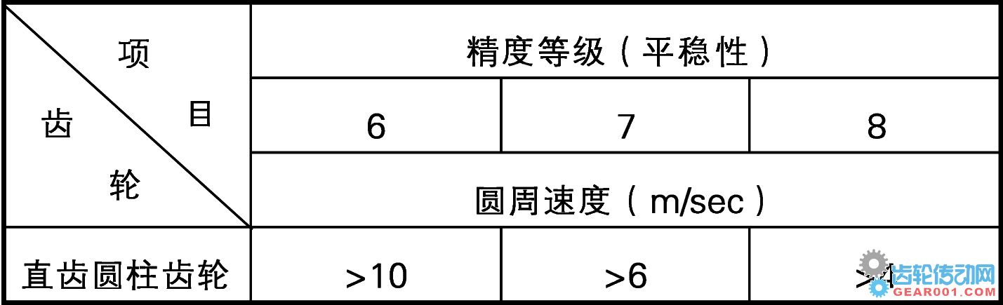 ②對(duì)于外接圓柱齒輪,圓周速度的要求見下表,滿足要求時(shí),進(jìn)行齒頂?shù)估狻?/p>