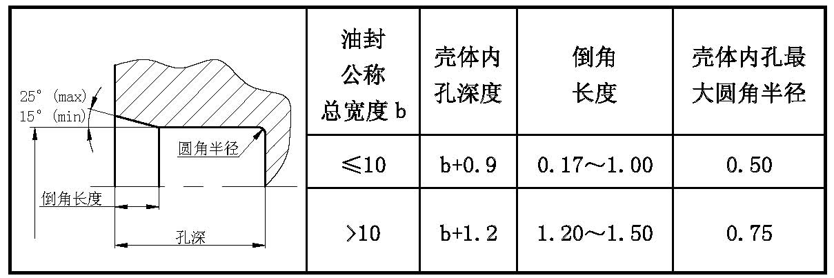 為了確保唇形油封的外圓在安裝后有足夠的緊固力度,對相配內孔的加工公差一般要求選用H級,不得大于H8。根據我單位的經驗:內孔公稱尺寸的加工公差按H6~H7為宜;內孔表面粗糙度為Ra1.6~3.2;內孔的表面硬度無要求。