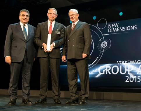 德國大眾汽車公司董事長Martin Winterkorn(博士)教授和德國大眾汽車公司負責采購的集團董事 Francisco Javier Garcia Sanz博士為 Kiekert AG 的董事長Karl Krause 博士頒發了 “2015 大眾集團獎 (Volkswagen Group Award)”。