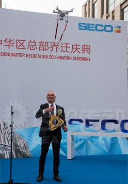 2016年2月26日,上海——隨著一架無人機將一把刀片形狀的鑰匙交到Lars Bergstrom先生手中,山高刀具集團CEO正式開啟了山高刀具大中華區總部新址的大門。山高刀具大中華區董事總經理Bo Udsen先生以及眾員工,與山高刀具副總裁傅安德先生,山特維克大中國區總裁張志強先生,中國機床總公司總裁郝明先生、瑞典王國駐滬總領事維多利亞女士和上海臨港經濟發展(集團)有限公司總裁袁國華先生,以及客戶、經銷商、媒體代表等近200名嘉賓共同見證了這一時刻。
