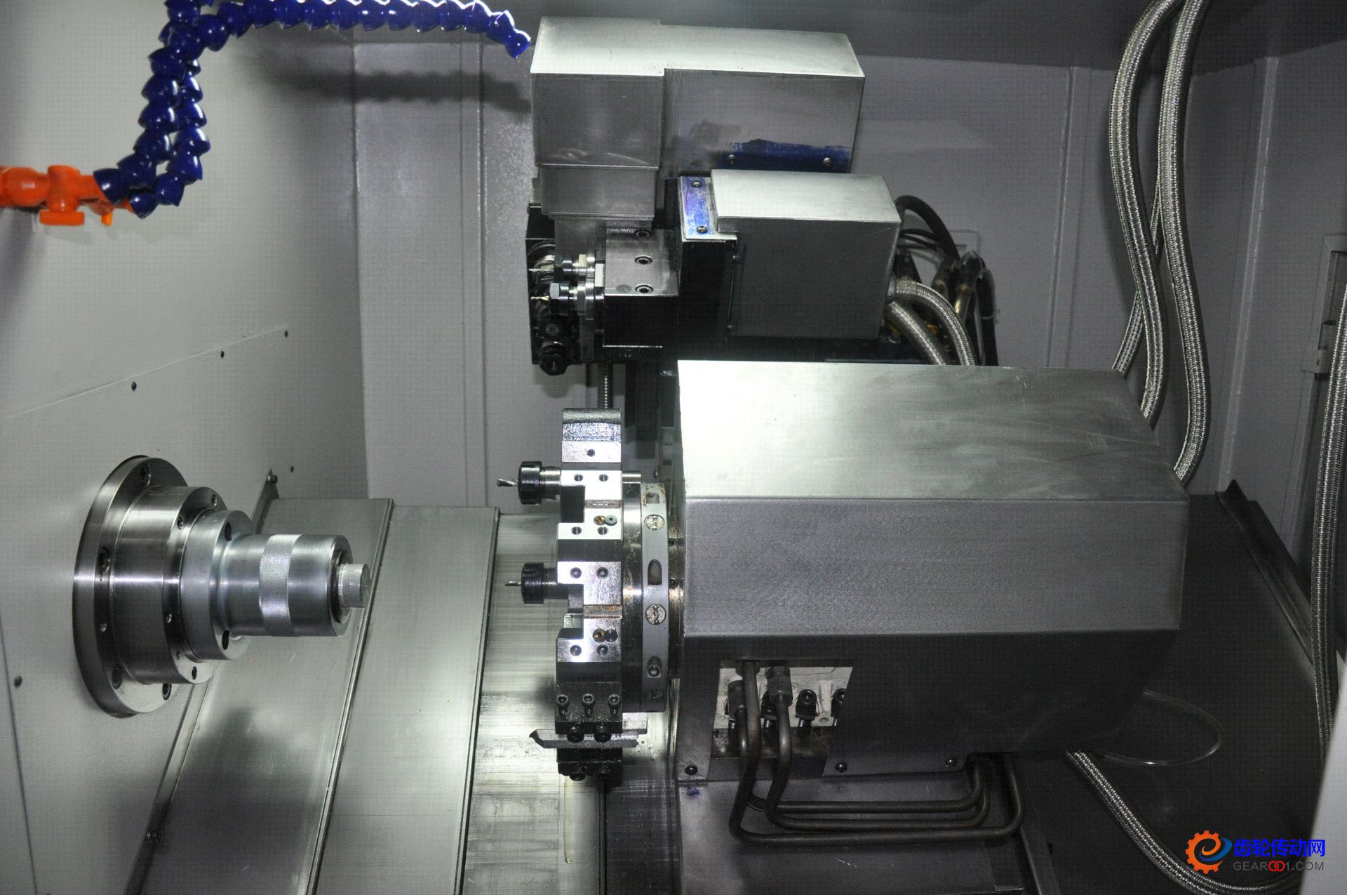加工過程的復合化也導致了機床向模塊化、多軸化發展。德國Index公司最新推出的車削加工中心是模塊化結構,該加工中心能夠完成車削、銑削、鉆削、滾齒、磨削、激光熱處理等多種工序,可完成復雜零件的全部加工。隨著現代機械加工要求的不斷提高,大量的多軸聯動數控機床越來越受到各大企業的歡迎。在2005年中國國際機床展覽會(CIMT2005)上,國內外制造商展出了形式各異的多軸加工機床(包括雙主軸、雙刀架、9軸控制等)以及可實現4~5軸聯動的五軸高速門式加工中心、五軸聯動高速銑削中心等。