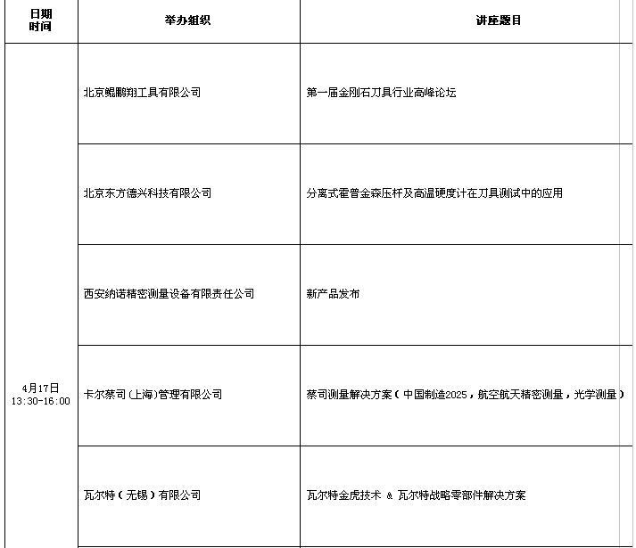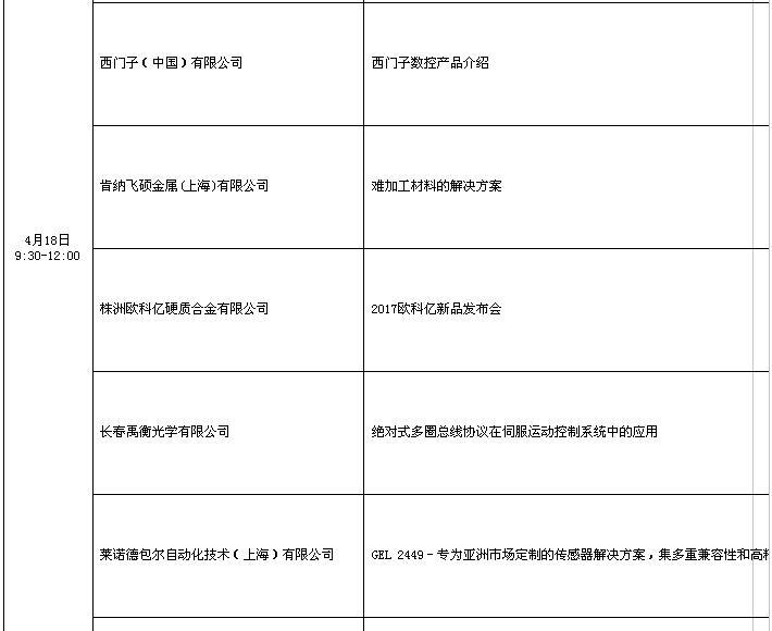 CIMT2017部分技術交流講座日程表