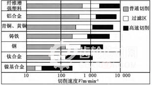 圖1 不同加工材料大致的切削速度范圍