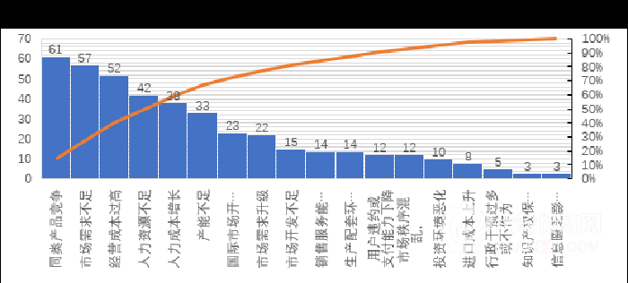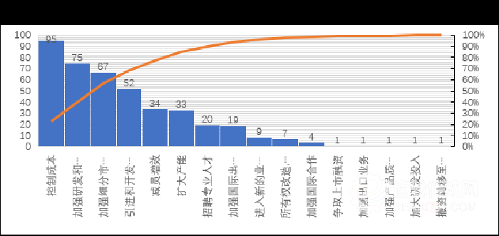 企業(yè)采取的主要措施有:控制成本(占22.6%),加強研發(fā)和技改投入(占17.9%),加強細(xì)分市場開拓(占16.0%),引進(jìn)和開發(fā)新產(chǎn)品(占12.4%),減員增效(占8.1%)和擴大產(chǎn)能(占7.9%)。