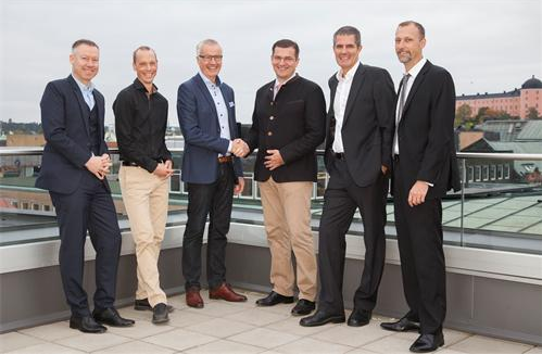 成功簽署合約后(從左到右):Jonas Lundberg (歐瑞康巴爾查斯瑞典總經理)、Olle Wänstrand (Primateria總經理),Mats Larsson (Primateria總經理),Martin Bartsch (歐瑞康巴爾查斯北歐中心負責人),Rickard Gåhlin (Primateria總經理) 和Mathias Pettersson (Primateria總經理).