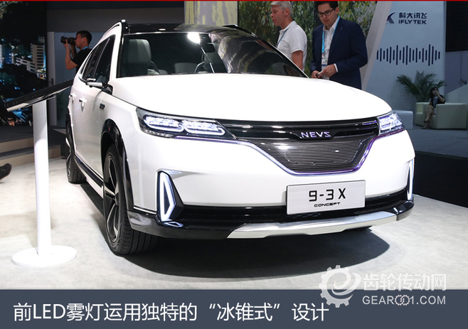 NEVS 9-3X為該品牌旗下純電動SUV車型,新車前臉設計與9-3車型相似,采用同樣的“笑臉”設計,頭燈組采用“冰塊”造型,而與9-3區別的是獨特的“三角冰錐式”設計。