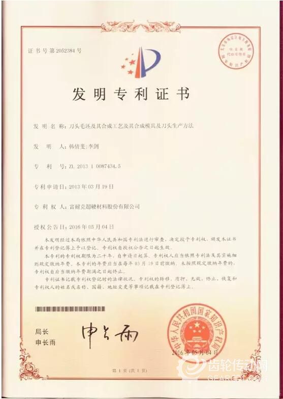 該專利是公司重要產(chǎn)品—“聚晶立方氮化硼制品”的核心專利技術(shù),保護(hù)了從刀頭毛坯合成工藝到合成所用模具再到生產(chǎn)一整套的工藝,具有極高的價(jià)值,此次獲獎(jiǎng)也是對(duì)該專利的高度肯定。