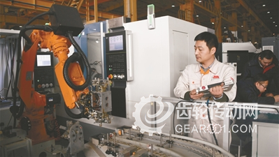 智能車間的自動化加工單元正在加工一款汽車零部件產品。