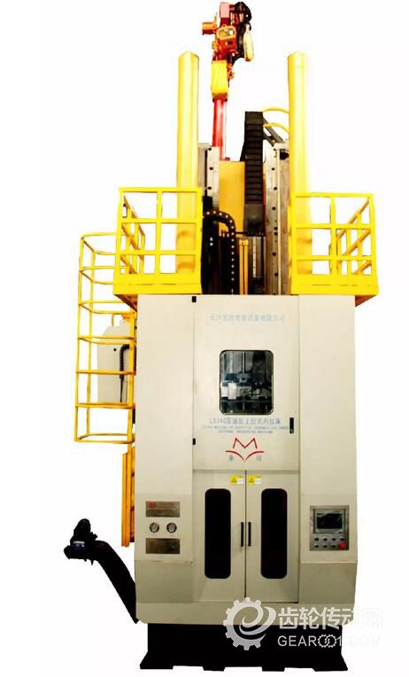 九軸數控車齒機床,刀架和工作臺均采用內裝主軸電機驅動結構。機床配有桁架機械手裝置,也留有機器人接口,可實現單機自動化和多機生產線自動化。機床各運動軸均由獨立交流伺服電機或內置電機(B軸、C軸為內置主軸電機)驅動,用“電子齒輪箱”實現分度運動、差動補償完成用展成法加工各種內齒類零件。機床采用干切方式,結構緊湊節能環保。可加工內直齒、斜齒和外直齒、斜齒,適用性強。機床配置自動上下料、料倉或自動聯線機構,可實現單機自動化及生產線自動化。