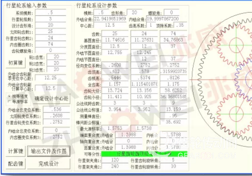 齒輪箱設計平臺在進行變位系數合理的分配、嚙合角優化計算、滑移率和重合度的校核。在前期設計開發階段,優化變位系數、行星齒輪齒頂干涉校驗,預防和改善齒輪箱的效率、噪音、壽命等問題。