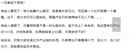 有人還以為董明珠是只懂得芯片ABC,想給人家普及芯片知識。其實,董明珠看過的芯片,不一定比某些看似專業、猛潑冷水的人少。