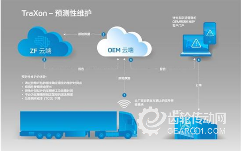 采埃孚使用預(yù)先安裝在車輛上的信號傳輸模塊,把變速箱狀態(tài)信息發(fā)送到供汽車制造商讀取的云端。通過采埃孚與汽車制造商數(shù)據(jù)平臺之間的互聯(lián),后者可從收到的原始數(shù)據(jù)中生成有關(guān)變速箱部件狀態(tài)的詳細(xì)報告。這些報告可供汽車制造商和車隊運營商參考,讓他們能主動地預(yù)先規(guī)劃維護(hù)工作。