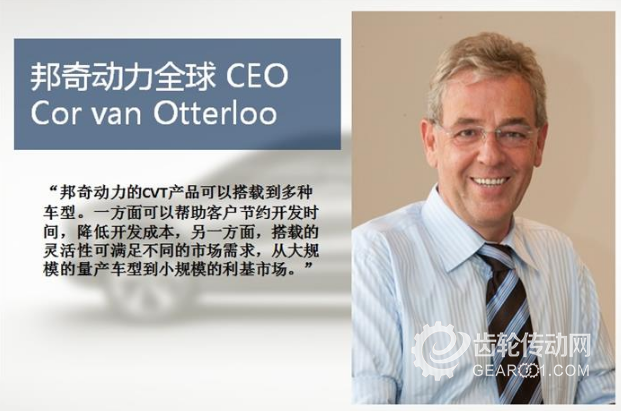 邦奇動力根據客戶需求靈活調整產品設計解決方案,產品序列開發完整,可滿足從傳統動力到強混動力以及純電動車型的匹配需求。“我們的CVT產品可以快捷地與不同發動機匹配,搭載到多種車型。一方面可以幫助客戶節約開發時間,降低開發成本,另一方面,搭載的靈活性可滿足不同的市場需求,從大規模的量產車型到小規模的利基市場。”邦奇動力全球CEO Cor van Otterloo 日前在接受蓋世汽車記者采訪時表示。