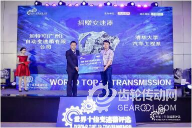 加特可(廣州)自動(dòng)變速箱有限公司開發(fā)部長洪震(左一)向清華大學(xué)汽車工程系捐贈(zèng)獲獎(jiǎng)變速器