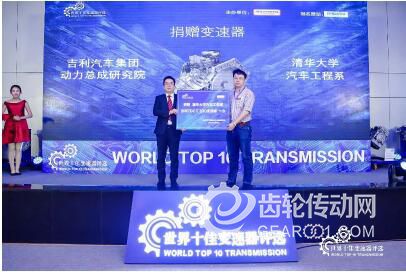 吉利動(dòng)力總成研究院副院長林霄喆(左一)向清華大學(xué)汽車工程系捐贈(zèng)獲獎(jiǎng)變速器