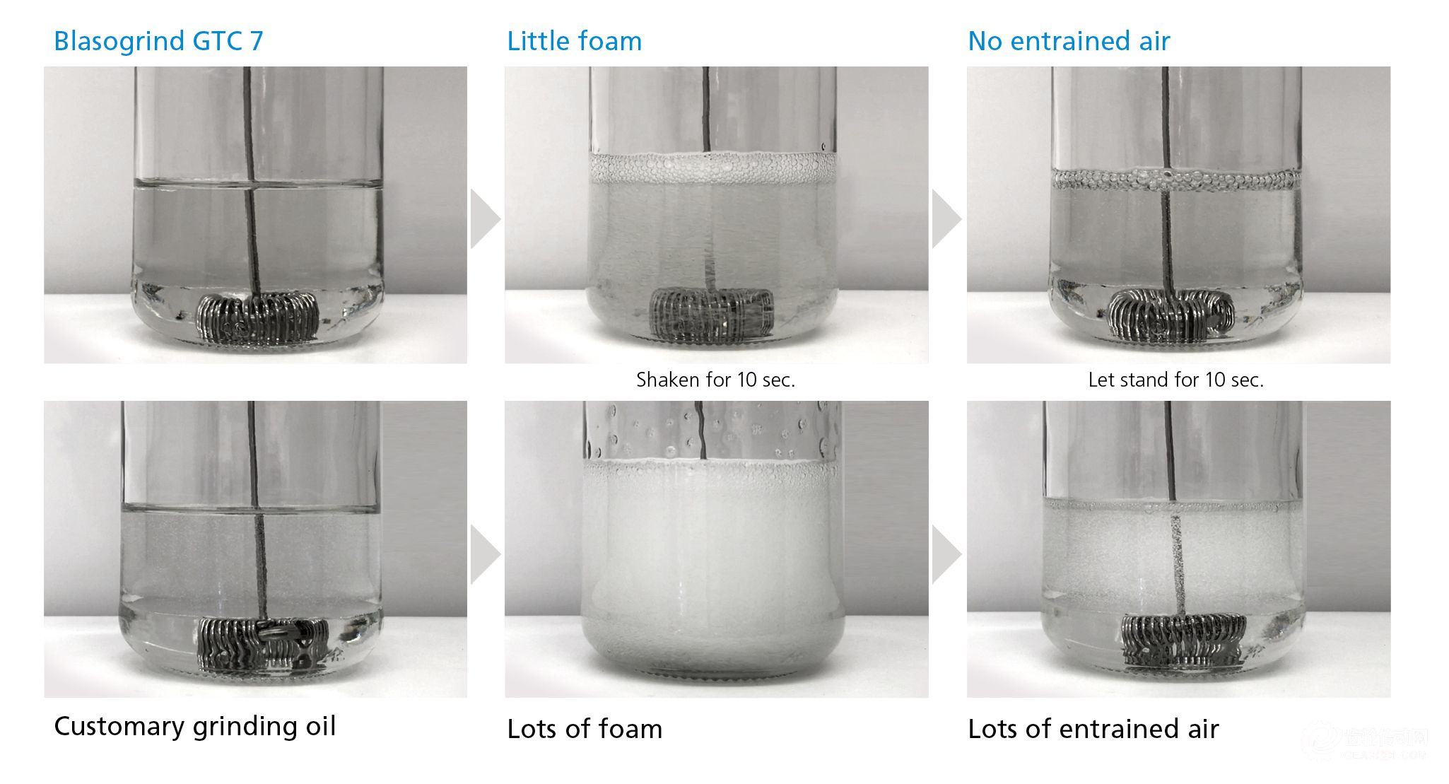 具有高磨削性能的新品Blasogrind GTC 7則是專為工具磨削加工而研發的。該磨削油的基礎油由天然氣轉化得來,精密的配方確保了更高的切屑去除率、更長的使用壽命以及極高的表面質量。最重要的是,空氣快速釋放性可確保加工實現最佳磨削性能,防止刀具產生微裂紋,并且可應用于小型冷卻液箱,不會因產生大量氣泡而停機。在中國國際機床展覽會的巴索展位,參觀者可以現場體驗磨削油攪拌器,并親自見證Blasogrind GTC 7卓越的消泡性能。為了能清晰看到磨削工藝并營造舒適的工作環境,這款高性能磨削油具有無色無味且透明的特點。