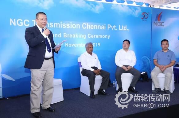 南高齒集團首席運營官兼風電事業部總經理顧曉斌、南高齒印度銷售公司總經理G. Rethina Kumar出席儀式并致辭,南高齒集團風電業務營銷副總經理朱泉生、南高齒集團高級總監陳勇、印度斯里城(Sir City)工業區領導、合作伙伴代表等參加奠基儀式。