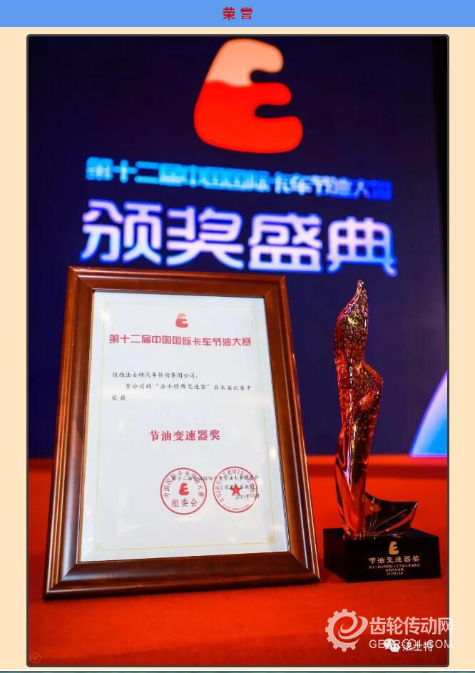 法士特12屆蟬聯“節油變速器獎”