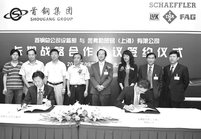 舍弗勒集團與首鋼總公司近日于北京正式簽署了戰(zhàn)略合作協(xié)議。雙方將充分發(fā)揮各自優(yōu)勢,實現(xiàn)優(yōu)勢互補、互利共贏。舍弗勒集團大中華區(qū)董事總經(jīng)理兼工業(yè)事業(yè)部總裁勾建輝博士及首鋼總公司設(shè)備部部長王玉海先生出席了簽字儀式。