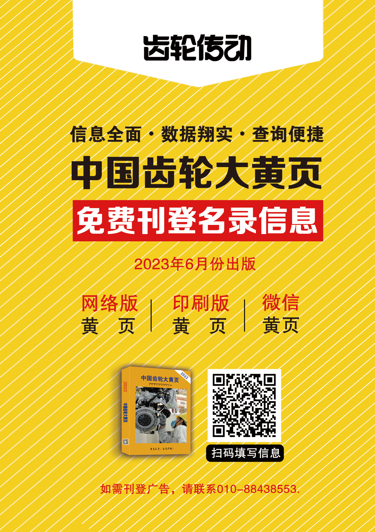 為了全面、系統(tǒng)地反映我國齒輪工業(yè)的實際情況,準(zhǔn)確有效地做好齒輪行業(yè)企業(yè)通信信息的整理發(fā)布,中機(jī)維協(xié)機(jī)械傳動分會參照國際黃頁編制規(guī)范,組織編制《中國齒輪大黃頁》(以下簡稱“《黃頁》”)。