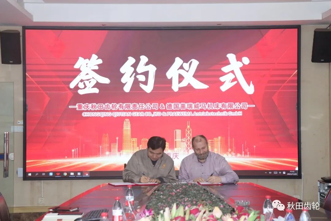 11月22日,重慶秋田齒輪有限責(zé)任公司與德國普瑞威馬機床有限公司珩齒機設(shè)備采購合作協(xié)議簽約儀式成功舉行。秋田公司副董事長劉一、技術(shù)副總鄭直,德國PRAEWEMA 亞洲區(qū)銷售總監(jiān)Mr Schmiedel、德福埃斯精密機械公司副總經(jīng)理高義軍出席簽約儀式。