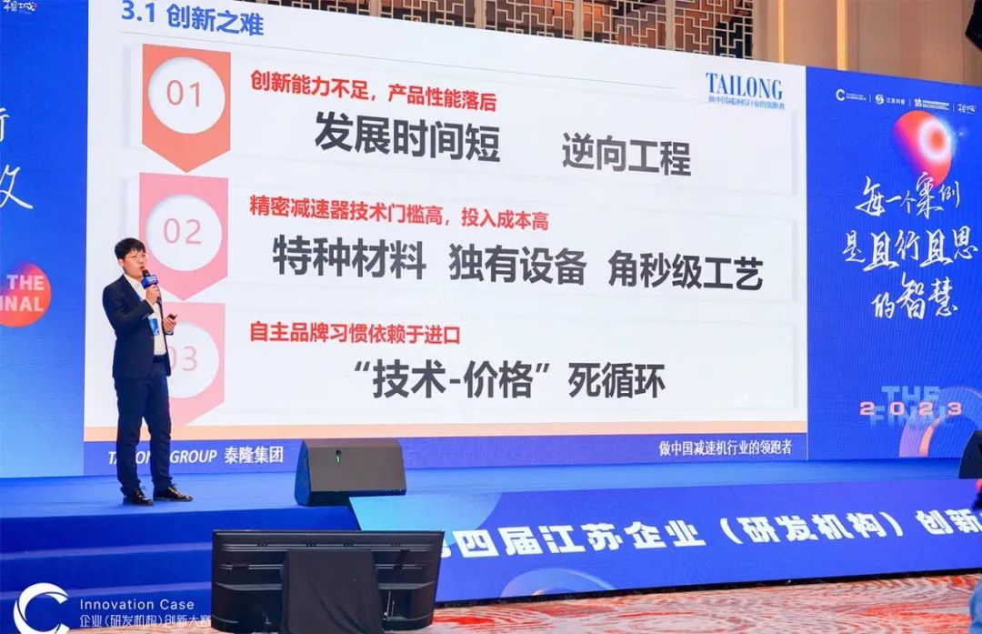 2023年11月23日,江蘇省企業研發機構促進會、江蘇省科學技術情報研究所在蘇州市聯合舉辦第四屆江蘇企業(研發機構)創新大賽決賽,泰隆集團參賽作品“新模式引領,助推智能智造——工業機器人用精密減速器研發歷程”榮獲一等獎。