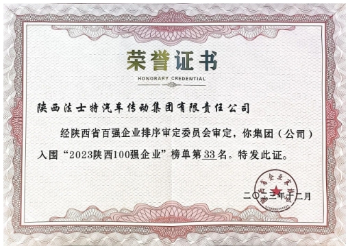 日前,陜西省企業(yè)家協(xié)會(huì)發(fā)布2023陜西100強(qiáng)企業(yè)和陜西民營(yíng)50強(qiáng)企業(yè)榜。陜西法士特汽車傳動(dòng)集團(tuán)有限責(zé)任公司榮登榜單,位列陜西百?gòu)?qiáng)企業(yè)榜單第33位。