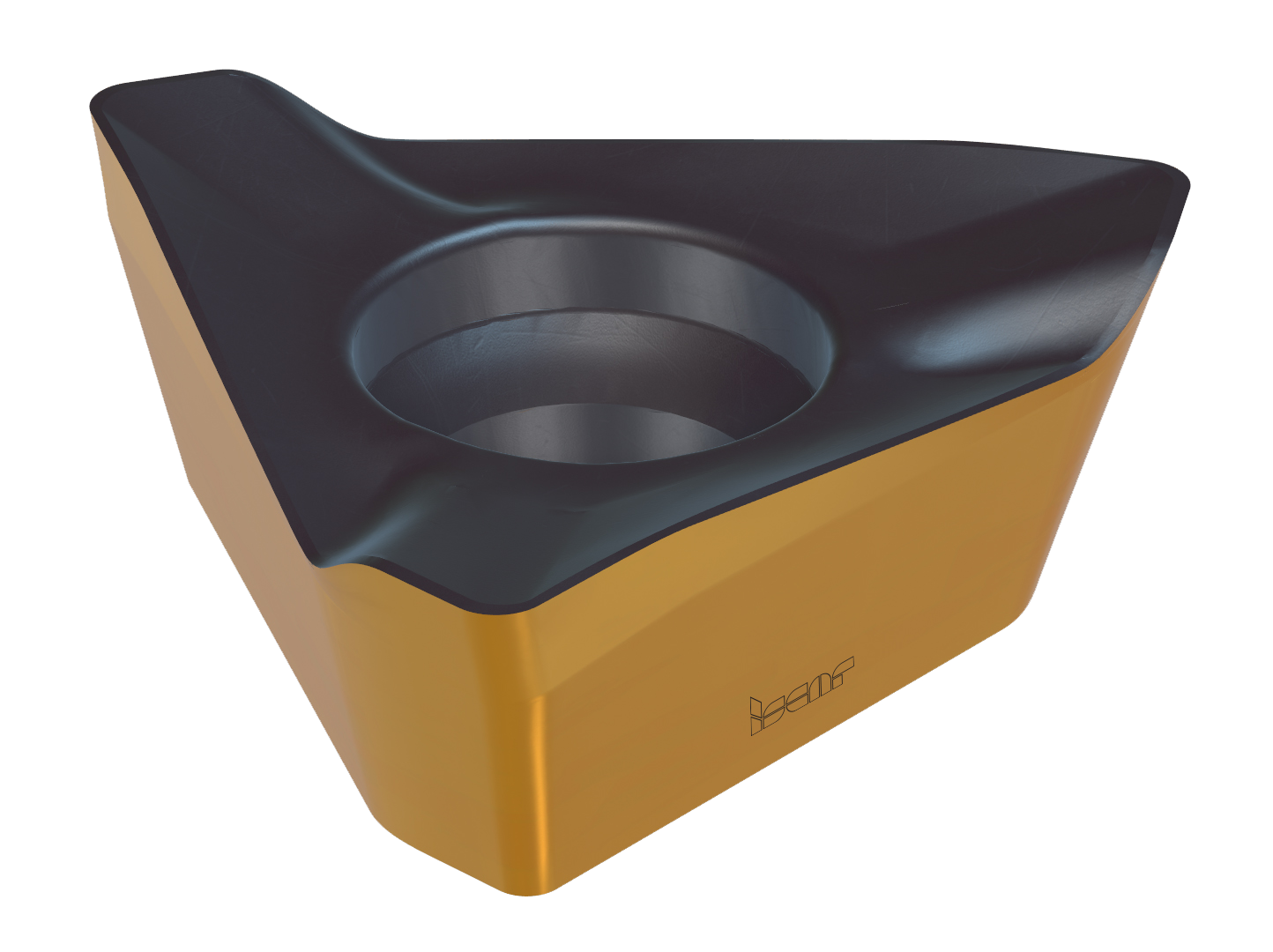 為了最大化硬質合金的使用效率,我們又開始對刀片進行新一輪的優化。通過將螺旋型切削刃成功應用到三角形刀片中,我們實現了這一目標。三角形刀片不僅代表其擁有三個切削刃,還帶來了其他的優勢。與其他刀片形狀相比,在切削刃長度相等的情況下,三角形形狀可獲得更寬的刀桿芯部空間。這使得冷卻孔徑尺寸增大,同時可以使用較大螺紋的刀片鎖緊螺釘。這樣一來,便提高了刀片的夾緊剛性,從而提高整個銑削刀具組件的耐用度。此外,三角形形狀還增強了其坡走銑削能力。