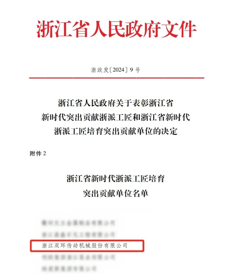 近日,省政府印發《關于表彰浙江省新時代突出貢獻浙派工匠和浙江省新時代浙派工匠培育突出貢獻單位的決定》,雙環傳動成功入選“浙江省新時代浙派工匠培育突出貢獻單位”名單!該獎項為省政府首次組織評選,以進一步擦亮“浙派工匠”的金名片。作為首批成功登榜企業,雙環傳動在各級政府的關心關懷和支持下,工匠培育工作碩果累累,受到高度認可。