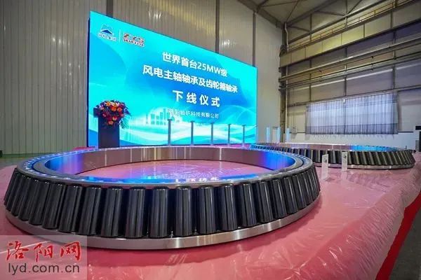 3月14日上午,世界首臺25兆瓦級風電主軸軸承及齒輪箱軸承,在洛陽軸研科技有限公司成功下線。