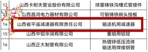 會上公布了2023年入選的39家企業的39個產品為“山西精品”產品和服務名單,山西省平遙減速器有限責任公司榮幸入選。