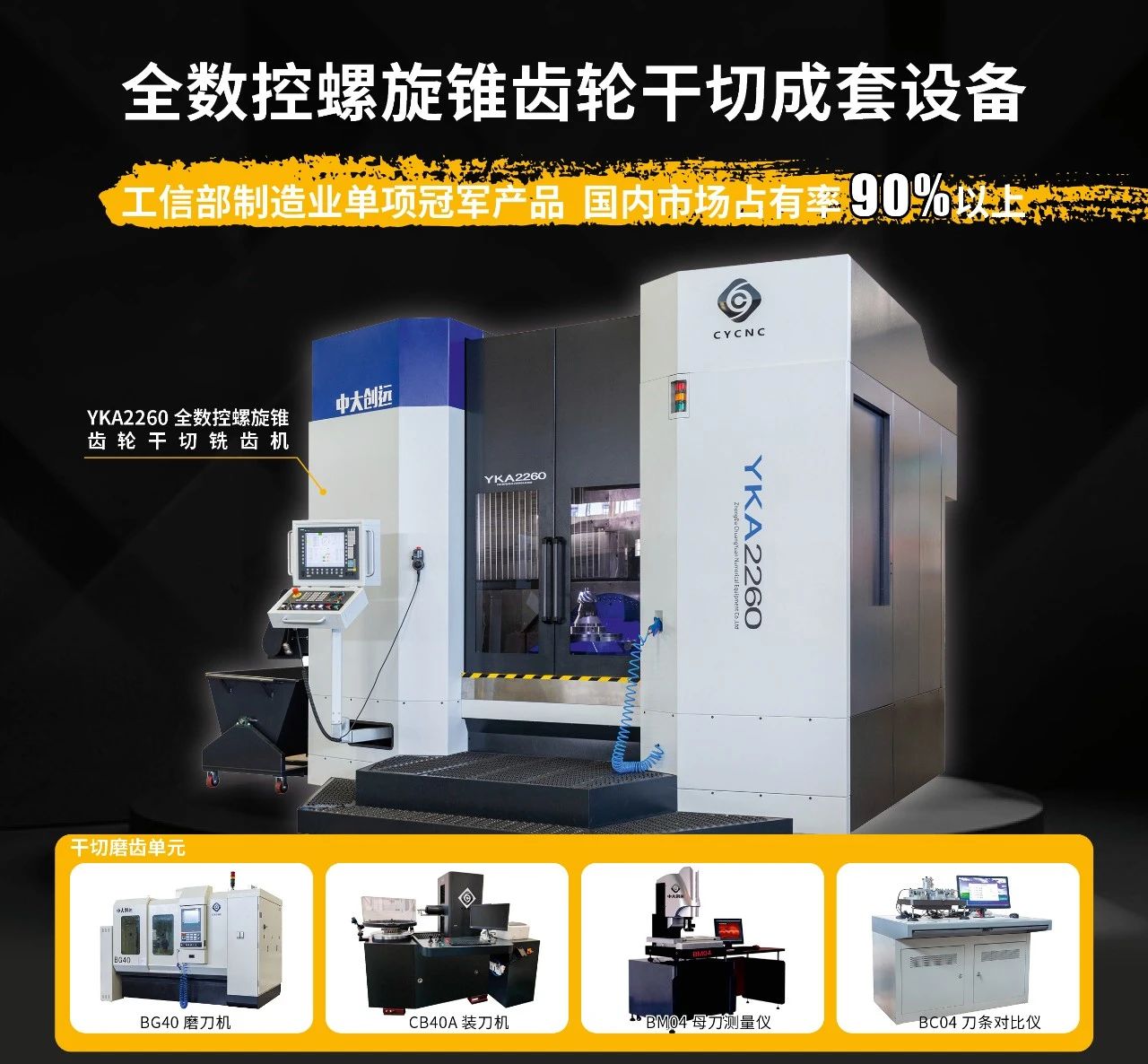 2012年,中大創(chuàng)遠(yuǎn)全數(shù)控螺旋錐齒輪干切成套設(shè)備的研制,在國內(nèi)首次實現(xiàn)了擺線齒理論設(shè)計、計算、加工、分析及磨刀單元、測量的理論及制造閉環(huán)體系,完成了國內(nèi)擺線齒干切全面的突破,被鑒定為“整體技術(shù)達(dá)到了國際先進(jìn)水平,其中部分技術(shù)處于國際領(lǐng)先水平”。其干切加工精度穩(wěn)定在5級以內(nèi),一條干切線的生產(chǎn)效率相當(dāng)于傳統(tǒng)濕切裝備5條生產(chǎn)線的生產(chǎn)效率,實現(xiàn)了高精高效、綠色制造。目前,中大創(chuàng)遠(yuǎn)成為國內(nèi)唯一一家真正實現(xiàn)錐齒輪兩種齒制理論閉環(huán)和制造閉環(huán)的企業(yè),干切成套設(shè)備在國內(nèi)市場最高占有率達(dá)90%以上,其性能和穩(wěn)定性已通過市場的長期檢驗,成熟應(yīng)用于汽車、減速機(jī)、機(jī)器人、工程機(jī)械等行業(yè),真正實現(xiàn)了進(jìn)口替代。
