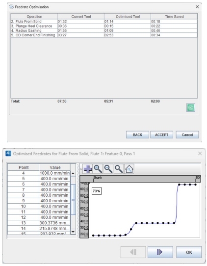· 新開發的功能包括整合材料去除率計算,使制造商能夠自動設置參數以獲得恒定的去除率,以及減少空行程時間。