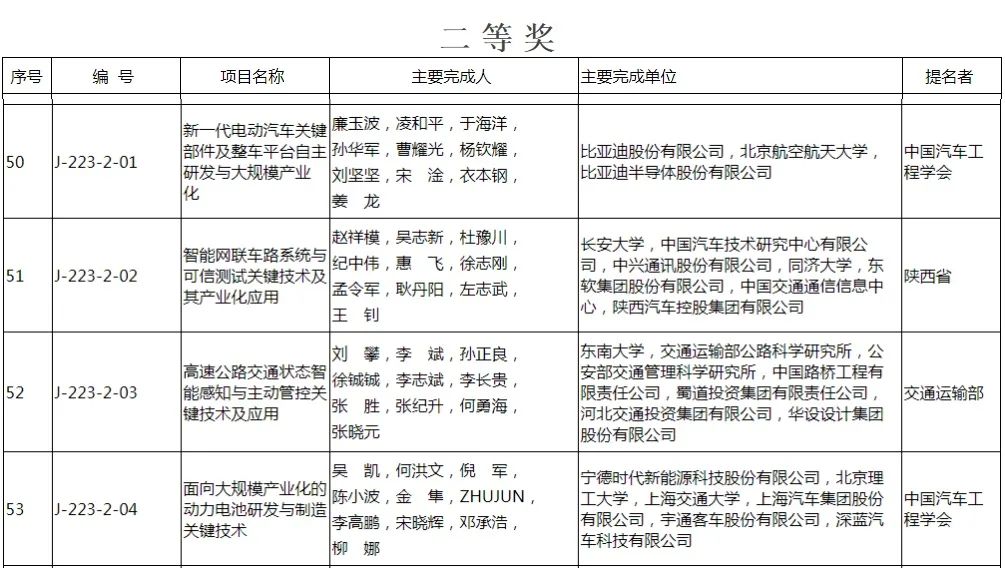 其中,由中國汽車工程學會提名,比亞迪股份有限公司、北京航空航天大學、比亞迪半導體股份有限公司共同完成的《新一代電動汽車關鍵部件及整車平臺自主研發揀與大規模產業化》項目;