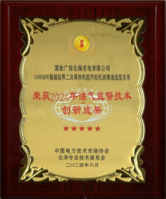 “1000MW超超臨界二次再熱機組汽輪機潤滑油選型應(yīng)用” 榮獲 “2024年油氣監(jiān)督技術(shù)創(chuàng)新成果”