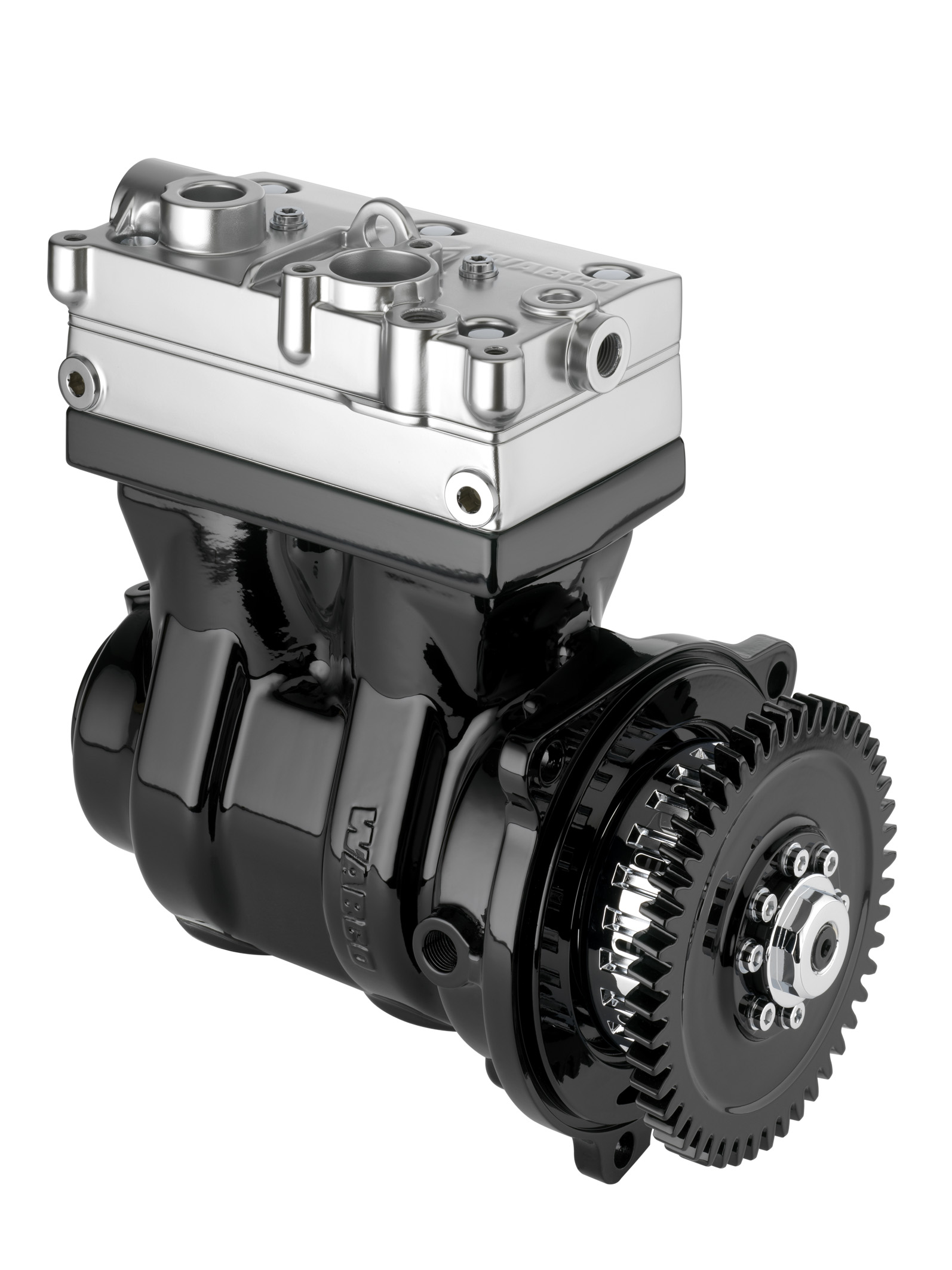 照片說明:威伯科c-comp_ 離合器型空氣壓縮機(如圖)與新一代 FuelGuard_ 電子空氣處理裝置相結合,提高了長途應用的燃油經濟性,減少了二氧化碳的排放