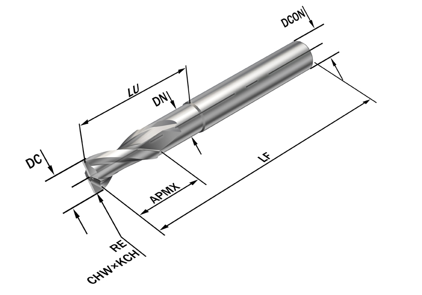 對(duì)于避空不足的加工場(chǎng)合,客戶(hù)也能夠修改立銑刀的有效長(zhǎng)度,以確保工件與刀具之間具有足夠的避空。客戶(hù)可以修改的尺寸,包括切削直徑、齒數(shù)、螺旋角、刀柄類(lèi)型、刀柄直徑和頸部直徑。